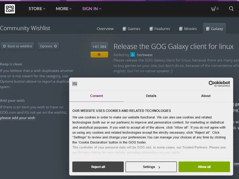 - GOG Wishlist - Release the GOG Galaxy client for Linux