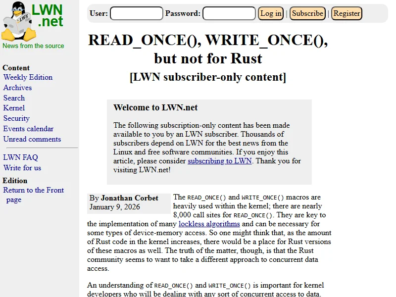 - READ_ONCE(), WRITE_ONCE(), but not for Rust | LWN.net
