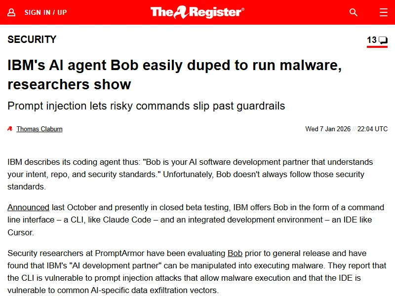 - IBM's AI agent Bob easily duped to run malware - The Register