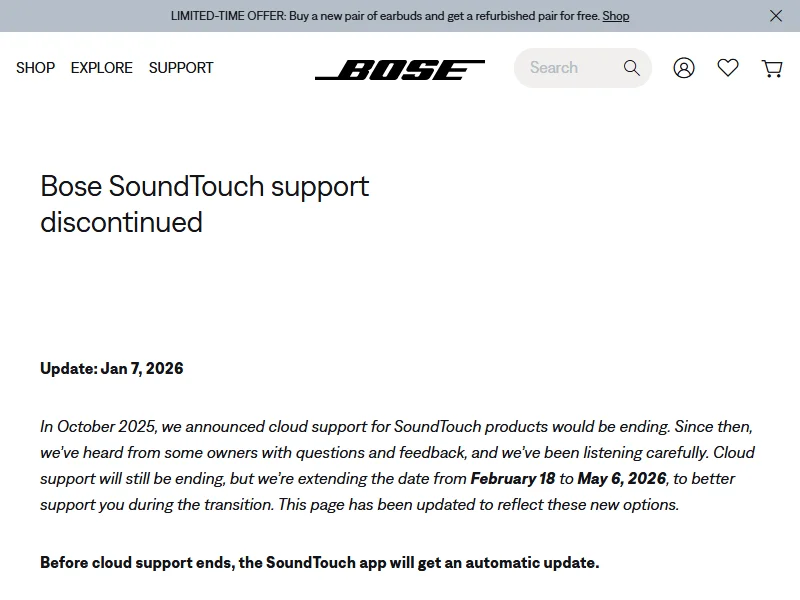 - Bose SoundTouch End of Life