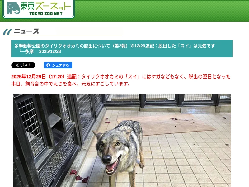 - 多摩動物公園のタイリクオオカミの脱出について | 東京ズーネット