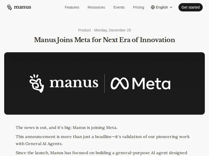 - Manus Joins Meta for Next Era of Innovation