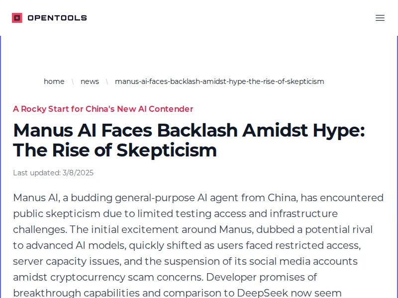 - Manus AI Faces Backlash Amidst Hype | OpenTools