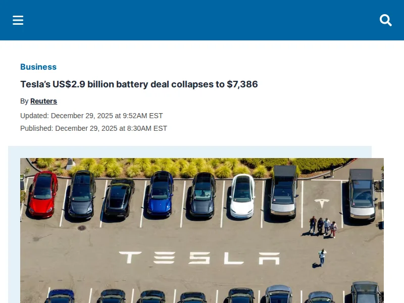 - Tesla's US$2.9 billion battery deal collapses to $7,386 | BNN Bloomberg