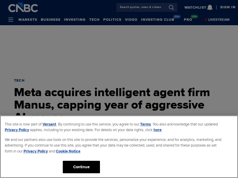 - Meta acquires intelligent agent firm Manus | CNBC