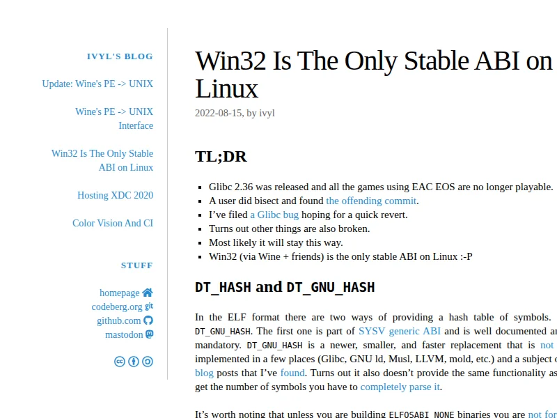 - Win32 Is The Only Stable ABI on Linux