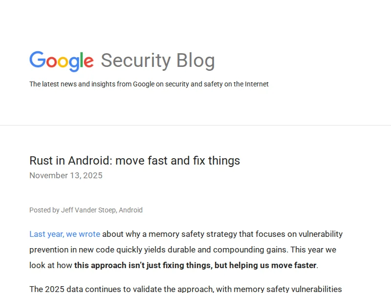 - Rust in Android: move fast and fix things - Google Security Blog