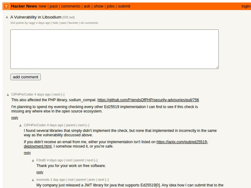 - Hacker News: A Vulnerability in Libsodium
