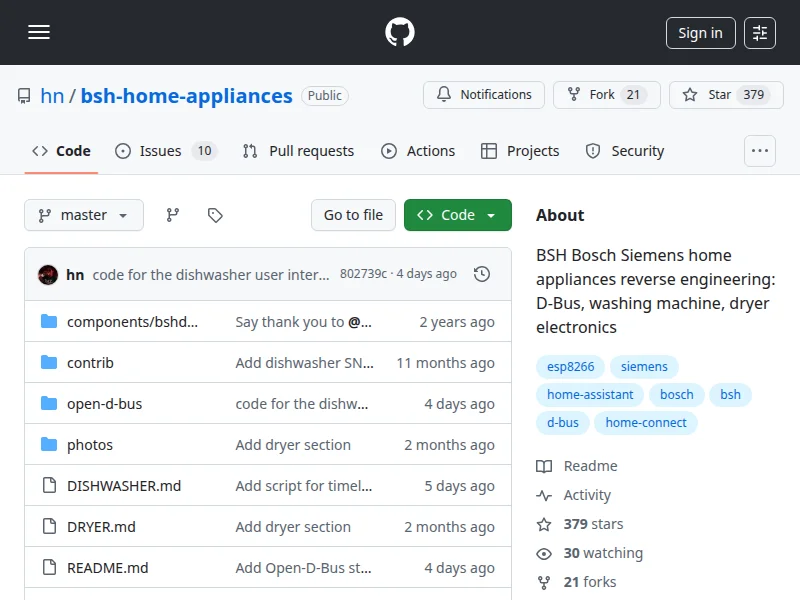 - BSH Home Appliances Reverse Engineering (GitHub)
