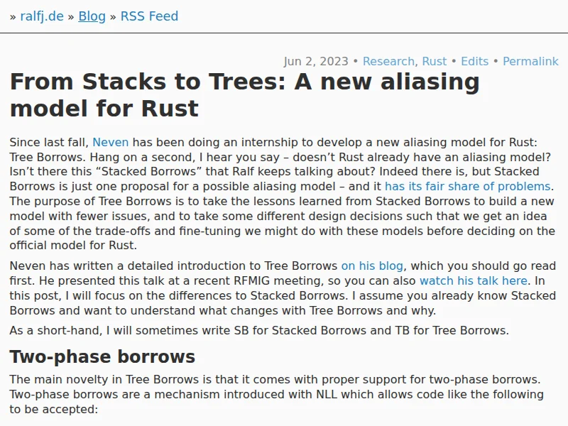 - From Stacks to Trees: A new aliasing model for Rust - Ralf Jung