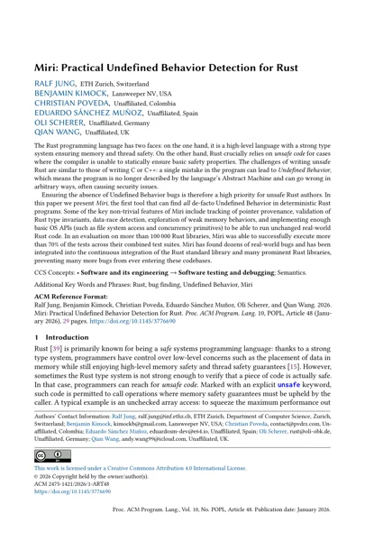 - Miri: Practical Undefined Behavior Detection for Rust - POPL 2026 Paper