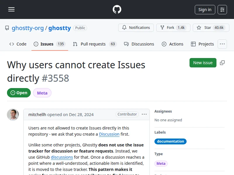 - Why users cannot create Issues directly - Ghostty GitHub Issue #3558