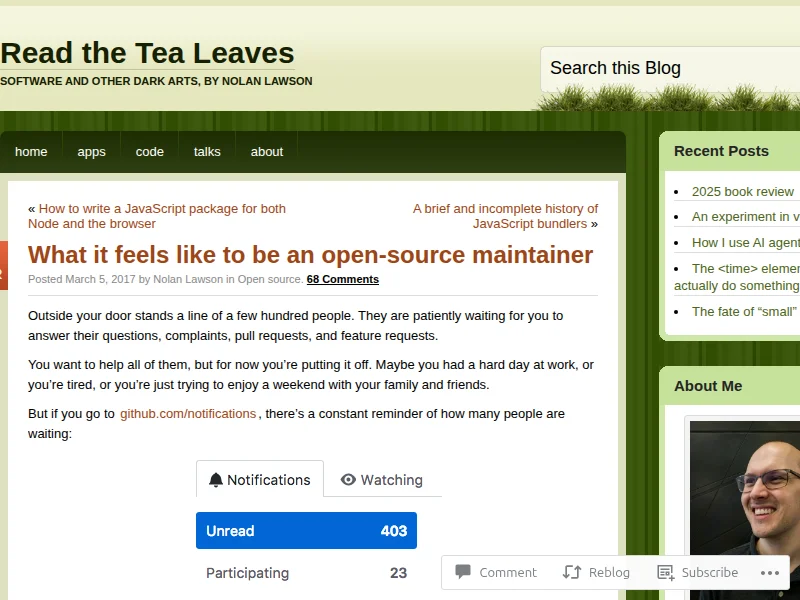 - What it feels like to be an open-source maintainer - Nolan Lawson