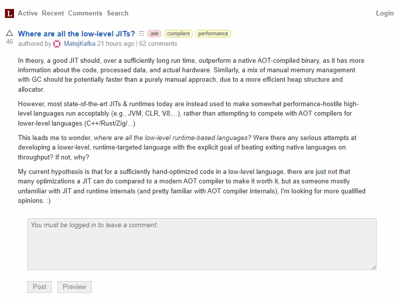- Lobste.rs: Where are all the low-level JITs?