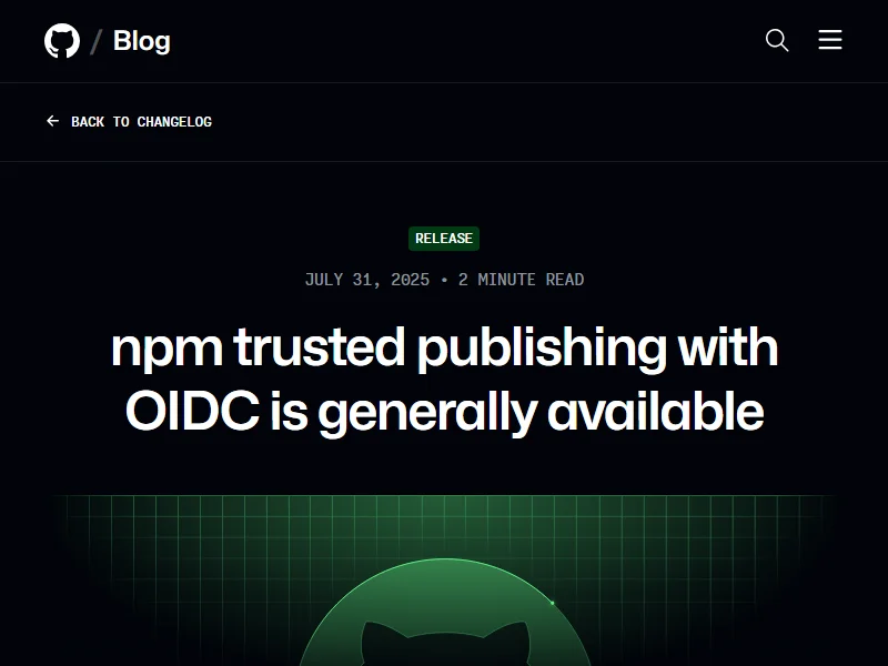 - GitHub Changelog: npm trusted publishing with OIDC