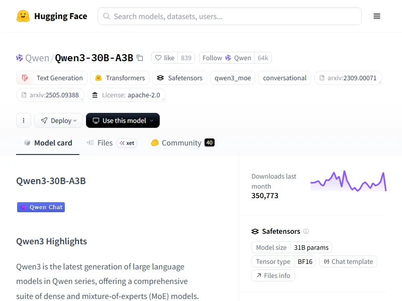 - Hugging Face: Qwen3-30B-A3B