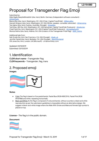 - Unicode Proposal L2/19-080: Transgender Flag