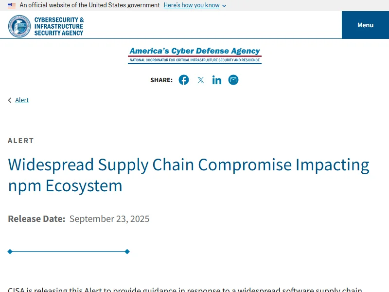 - CISA: Shai-Hulud npm compromise