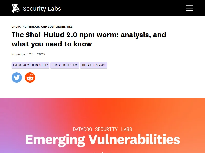 - Datadog: Shai-Hulud 2.0 analysis