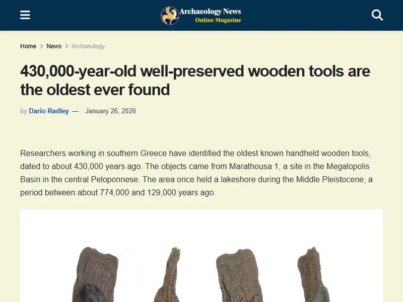 - 430,000-year-old wooden tools found in Greece