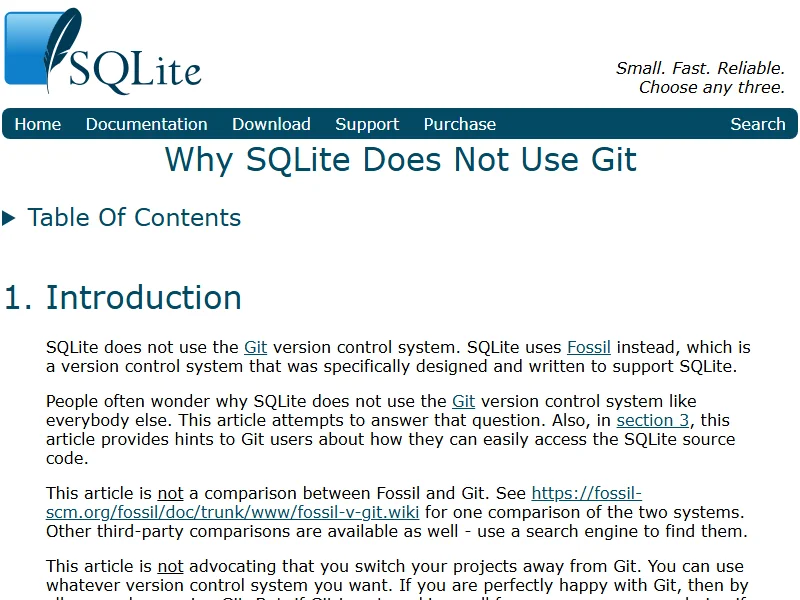 - Why SQLite Does Not Use Git
