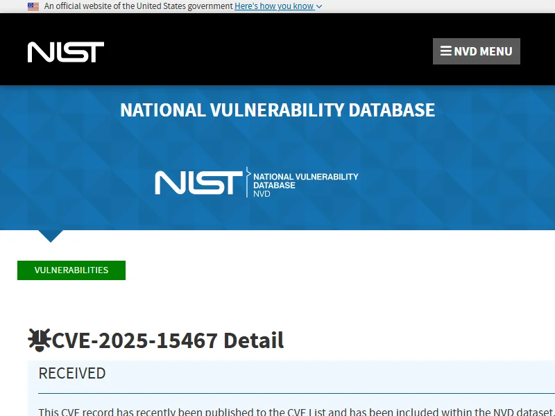 - CVE-2025-15467 - OpenSSL CMS AuthEnvelopedData Stack Buffer Overflow