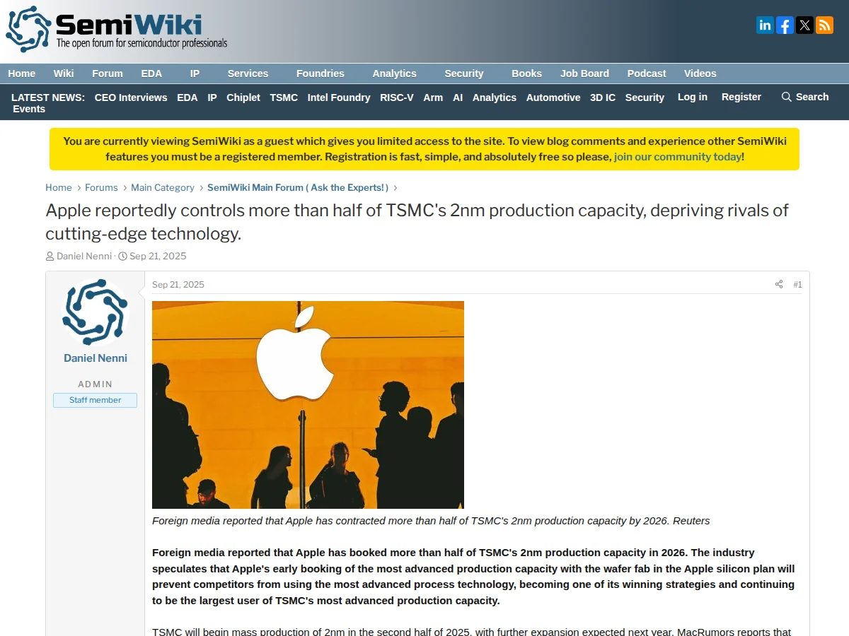 - Apple reportedly controls more than half of TSMC's 2nm production capacity
