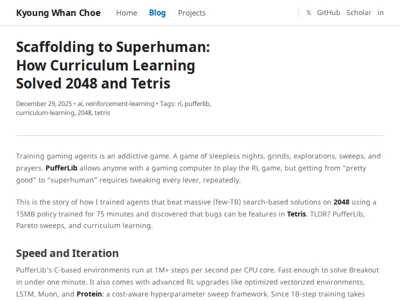 - Scaffolding to Superhuman: How Curriculum Learning Solved 2048 and Tetris