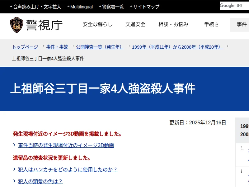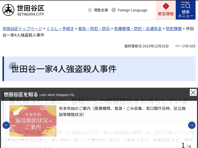 - 世田谷一家4人強盗殺人事件 - 世田谷区公式ホームページ
