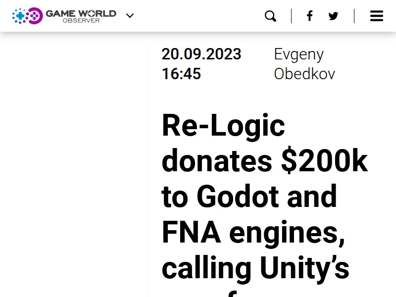 - Re-Logic donates $200k to Godot and FNA engines