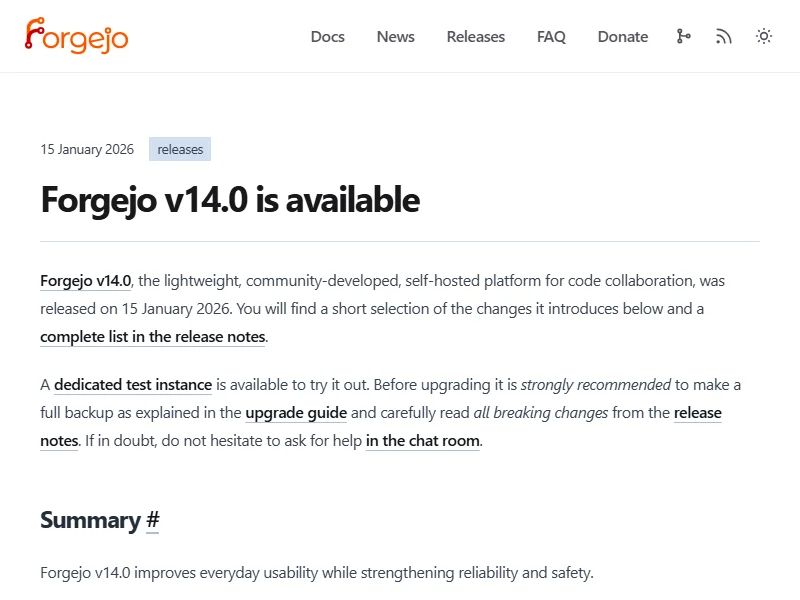 - Forgejo v14.0 is available