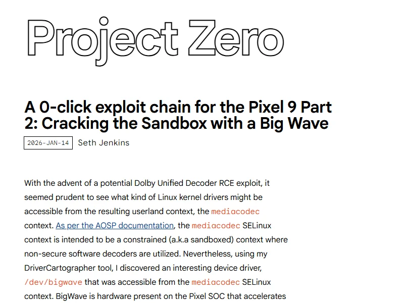 - A 0-click exploit chain for the Pixel 9, part 1: Decoding Dolby - Project Zero