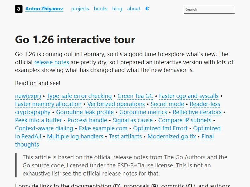 - Go 1.26 interactive tour