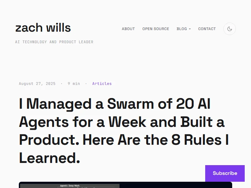 - I Managed a Swarm of 20 AI Agents for a Week - Zach Wills