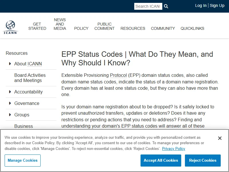 - ICANN EPP Status Codes