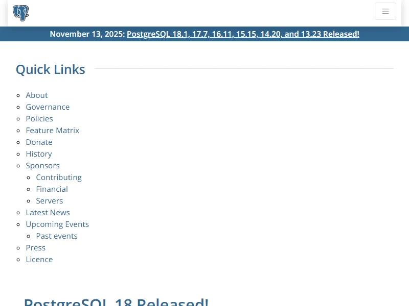 - PostgreSQL 18 Released