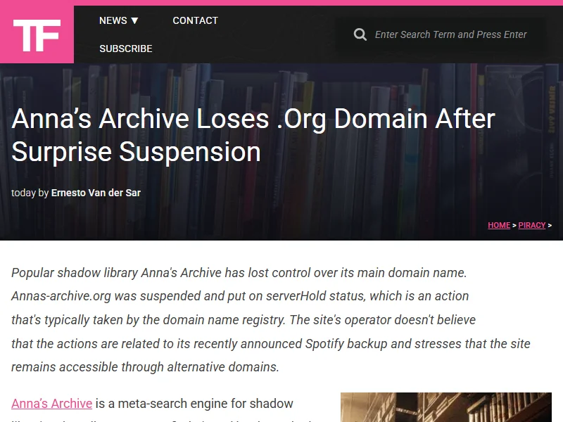- Anna's Archive Loses .Org Domain After Surprise Suspension - TorrentFreak